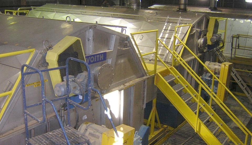 Montage mécanique de 2 F.A.D., une nouvelle ligne de raffinage des rejets au PTM et du nouveau secteur  blanchiment et cuisine pour la fabrication du papier « Equal Offset » 3/4 (230 000 t.p.a.).