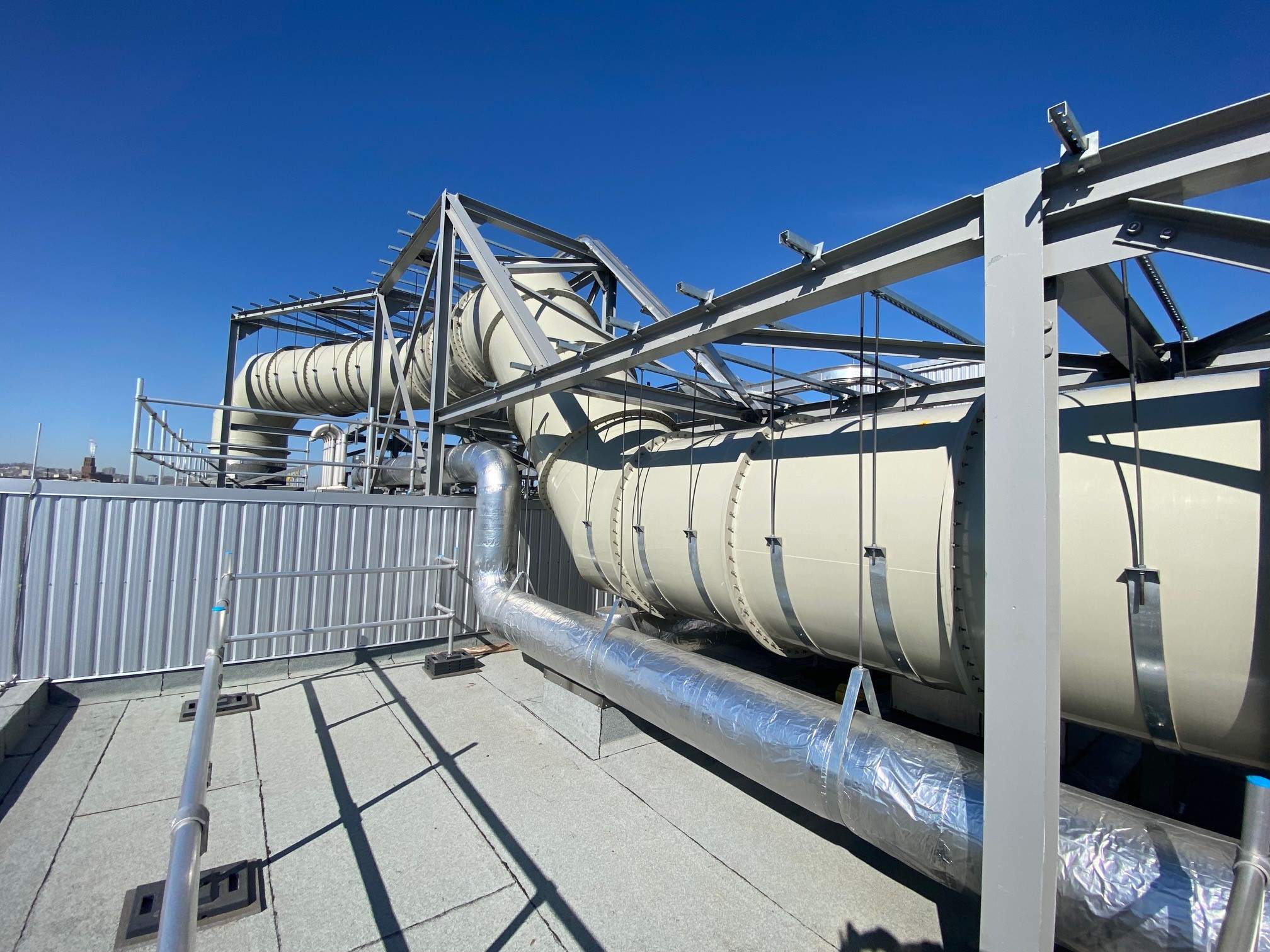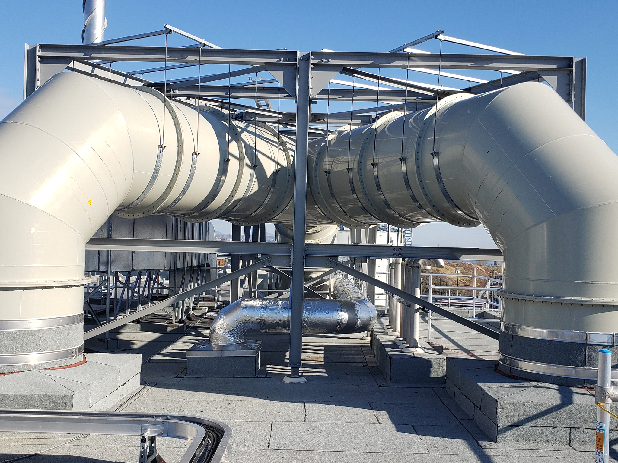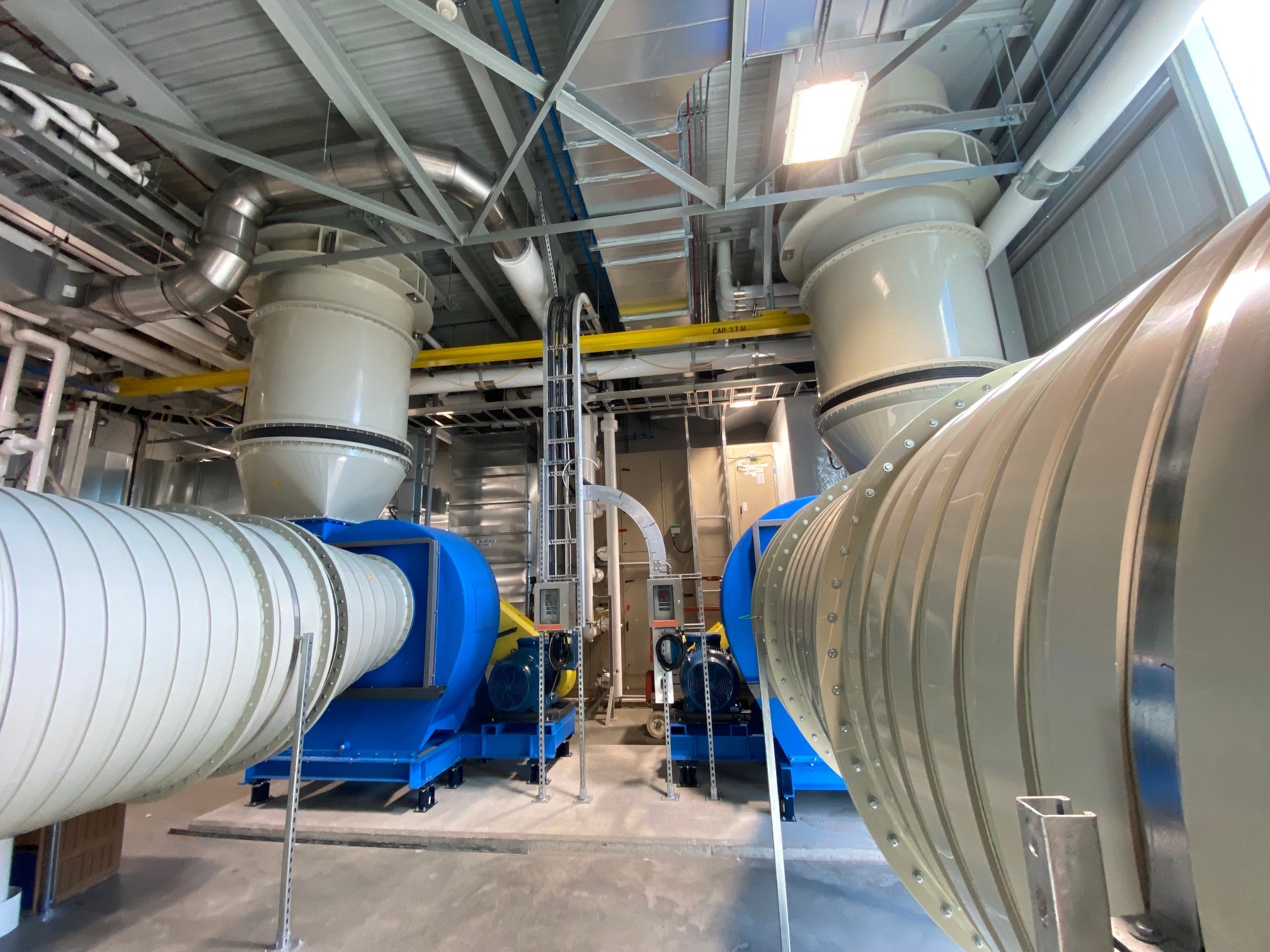 Construction du Centre de biométhanisation de la matière organique de Québec qui assure la biométhanisation des boues municipales en provenance de la station des eaux usées et de la matière organique en provenance du CRMO.