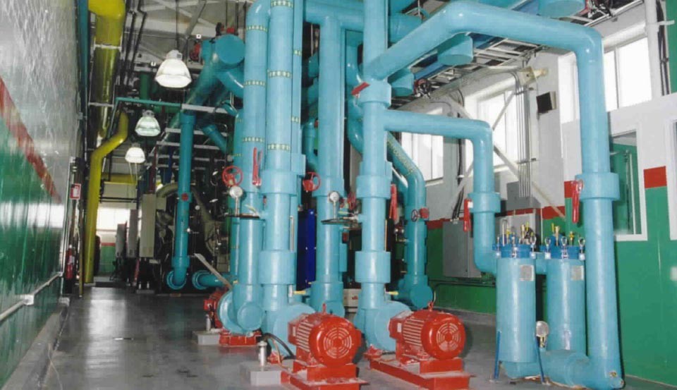 Installation de trois refroidisseurs de 850 tonnes chacun, de trois  tours de refroidissement et d’une centrale de pompage comprenant, entre autres, les pompes et toute la tuyauterie requise.